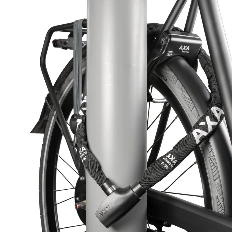 Die AXA Absolute 5-90 ist ein praktisches Kettenschloss und wurde speziell entwickelt, um Ihr Rad bei kurzem bis mittellangem Parken zu sichern oder es als Zweitschloss einzusetzen. Die Absolute nutzt einen praktischen integrierten Schlosskopf mit automatischer Click-In-Funktion. Das bedeutet, dass Sie den SchlĂĽssel nicht drehen mĂĽssen, um das Schloss abzuschlieĂźen.
