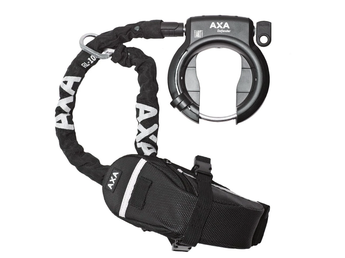 AXA Defender Rahmenschloss mit 140 cm Einsteckkette und Satteltasche im Set