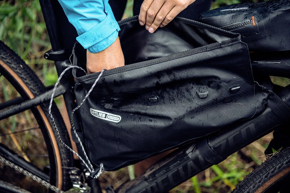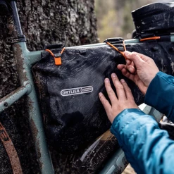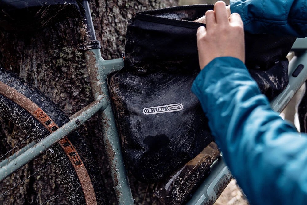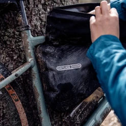 Die Rahmentasche mit Rollverschluss von ORTLIEB für das Bike-Packing hilft immer gut gerüstet in das nächste Abenteuer zu starten. Dank des wasserdichten Rollverschlusses, der über drei Silikonringe verschlossen wird, in Verbindung mit dem bewährten Nylongewebe bleibt das Gepäck im Tascheninneren auch bei widrigsten Bedingungen absolut trocken. Das Frame-Pack RC eignet sich ideal, um vor allem schweres Gepäck, wie etwa Werkzeug oder Nahrungsvorräte, zentral im Rad zu verstauen. Dadurch bleibt ein tiefer Schwerpunkt erhalten und der Trailspaß auch bei voller Beladung unverändert hoch. Der Rollverschluss und die damit verbundene große Öffnung ermöglichen den leichten Zugriff auf das gesamte Tascheninnere und das unkomplizierte Bepacken der Tasche. Die Montage innerhalb des Rahmendreiecks erfolgt über haftstarke und robuste Klettverschlüsse. Die spezifische Positionierung der Klettbänder entlang des Taschenumfangs ermöglicht eine individuelle Abstimmung auf die Gegebenheiten des Bikes. Das Frame-Pack RC ist zudem in zwei Größen, 4 und 6 Litern erhältlich. Das Frame-Pack RC ist geeignet für die Montage an Carbon-Rahmen, ist PVC-frei und wird nachhaltig in Deutschland hergestellt.