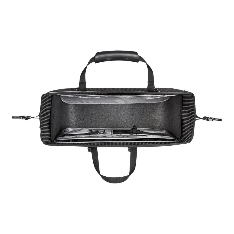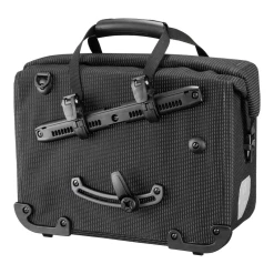 Die wasserdichte Fahrradaktentasche mit Rollverschluss kann rechts oder links am Gepäckträger angebracht werden und ist mit einem Handgriff schnell wieder eingehängt und abgenommen. Die Office-Bag bietet ausreichend Stauraum für zwei DIN A4 Ordner (Gr. L), Schreibzeug, Handy & Co.
