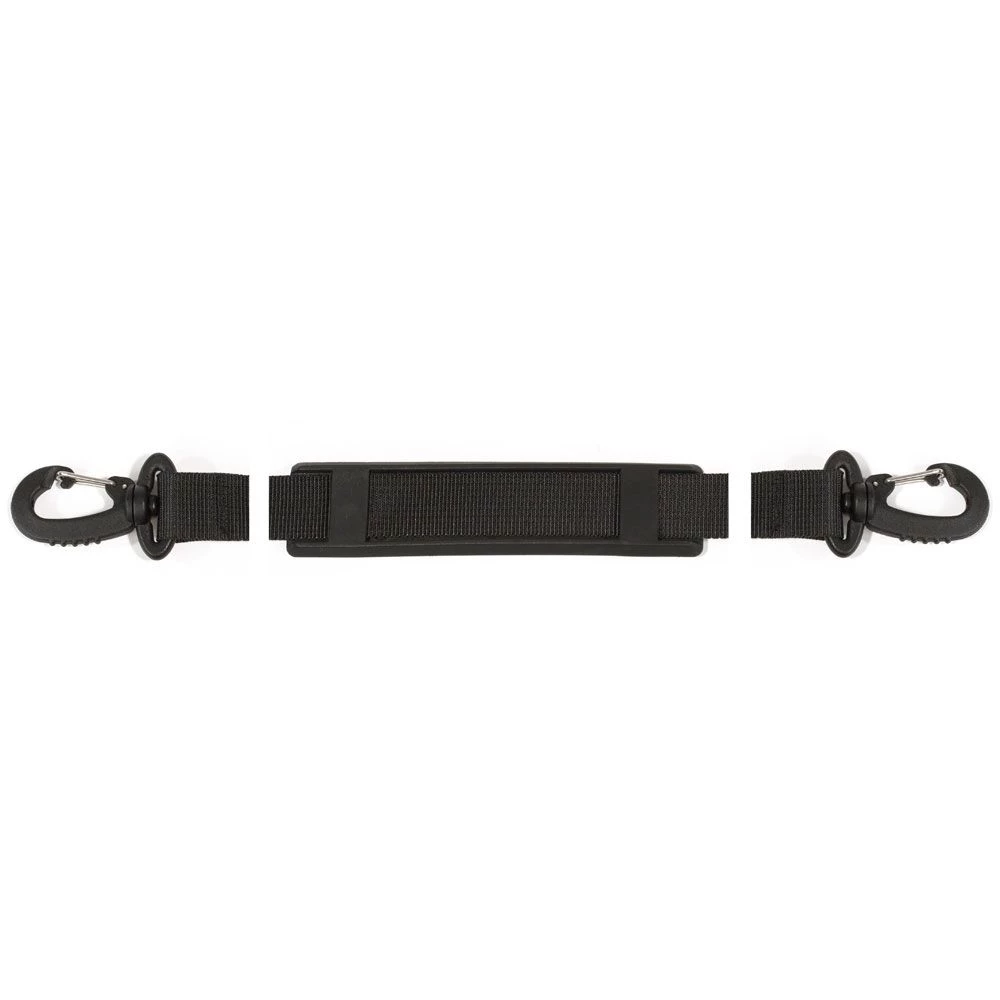 Universeller Tragegurt fĂĽr ORTLIEB-Taschen mit D-Ringen, mit Schulterpatte aus Kunststoff sowie Karabinern an den Enden.