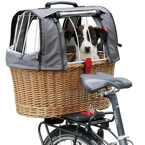 Viele gute Ideen stecken in diesem komfortablen Hundekorb für den Gepäckträger. Hier dürfen Zweibeiner bis maximal 8Kg mitfahren. Zwei Spezialgelenke und ein KLICKfix Verschluss sorgen für sichere und einfache Handhabung ohne fummelige Lederriemen. Bei Bedarf ist das Gitter komplett abnehmbar. Mit Reflektor, Tragegriff und waschbarem Bodenkissen. Kombiniert mit dem variablen Wind- und Wetterschutz bietet der Doggy Basket Plus zusätzlich viele Möglichkeiten, Licht und Luftöffnungen zu schaffen.