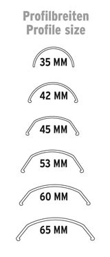 | Art. Nr.: | Bezeichnung | Farbe | Profilbreite | Felge | Bereifung |
