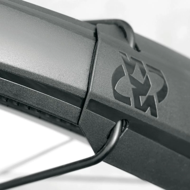 Die Steckradschutz-Verlängerung SPEEDROCKER EXTENSION schützt vor allem den nachfolgenden Biker vor Nässe und Schmutz. Die Erweiterung aus schwarzem, schlagzähem Kunststoff lässt sich bei Bedarf ganz unkompliziert auf den bewährten SPEEDROCKER-Hinterradschutz aufstecken und ihn somit um 170 mm verlängern. Die Montage und Demontage ist werkzeuglos und innerhalb von Sekunden möglich. Der größere Abstand des Schutzbleches am unteren Ende ermöglicht es zudem, Spritzwasser und Schlamm besser abzufangen. So wird nicht nur der Rücken des Fahrers, sondern auch der Radpartner von aufwirbelndem Dreck verschont.