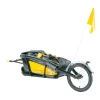 Robuster Fahrradanhänger für eine sichere und bequeme Fahrt. Einfache Umrüstung zum Buggy, sichere Befestigung mit dem patentierten ezHitch-System, leicht zusammen klappbar, extra Stauraum, höhenverstellbarer Schiebebügel HeightRight, 5-Punkt-Sicherheitsgurt mit Polsterung, reflektierendes Material, getönte Fenster, Sonnenblende, erfüllt internationale Sicherheitsstandards, 20″ Hinterräder, schwarze Felgen, Sitzhöhe: 60 cm, Schulterbreite: 58,4 cm